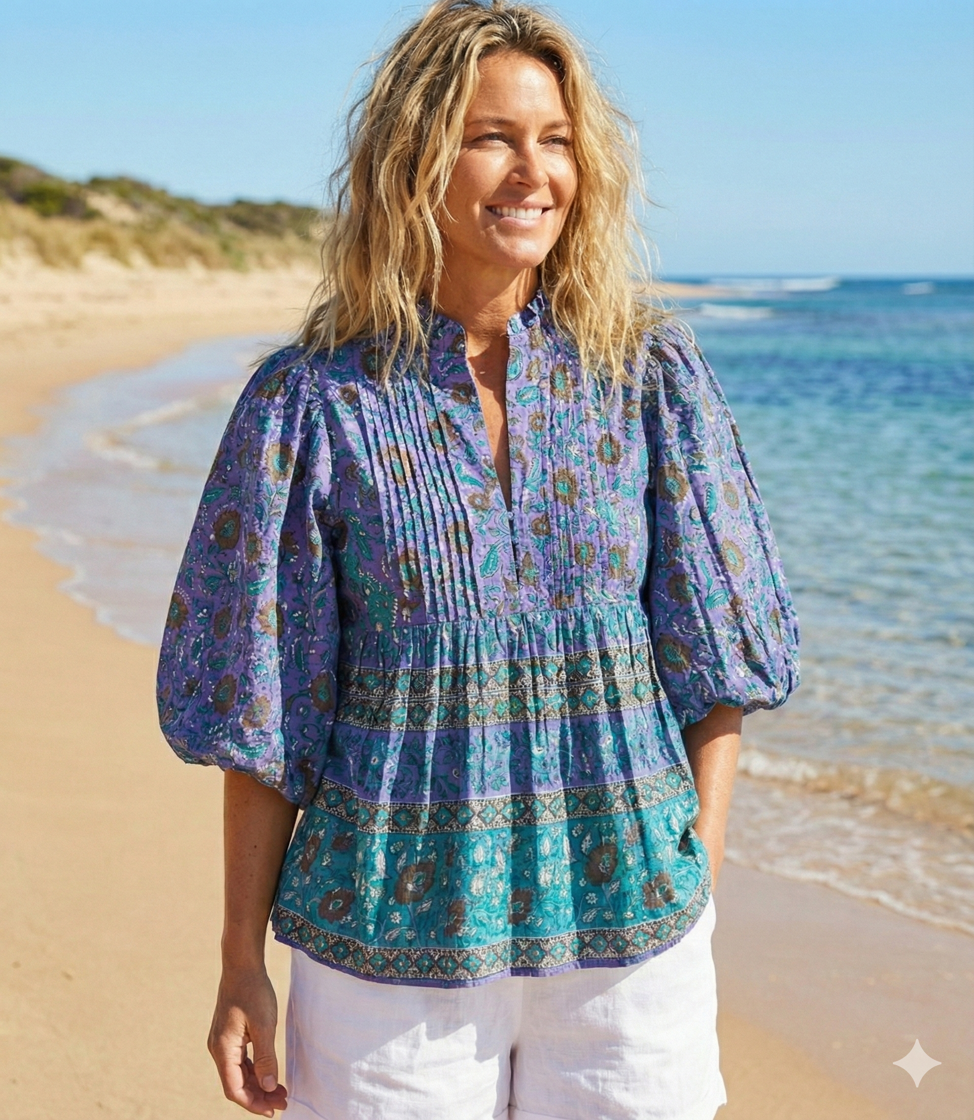 Effortless silhouettes in striking hues come alive through the extensive process of block printing, From pretty stripes and ditsy florals to bold geometric shapes, infinite patterns can be hand printed through a wooden block,The imperfections are a natural result of the beautiful process called Block Printing - a labour intensive technique involving printing through the use of hands.