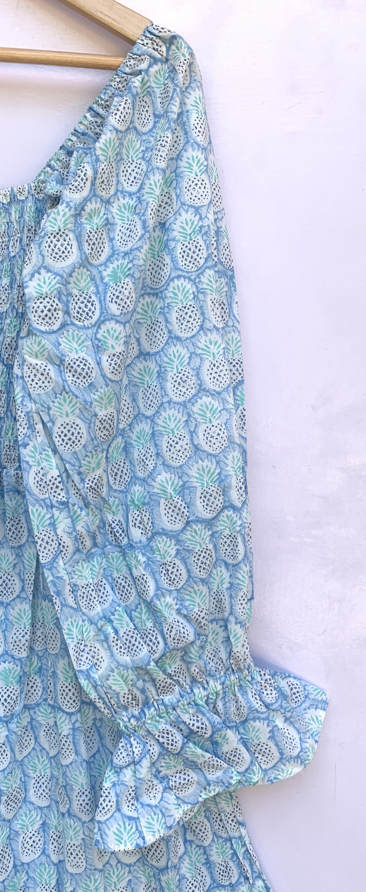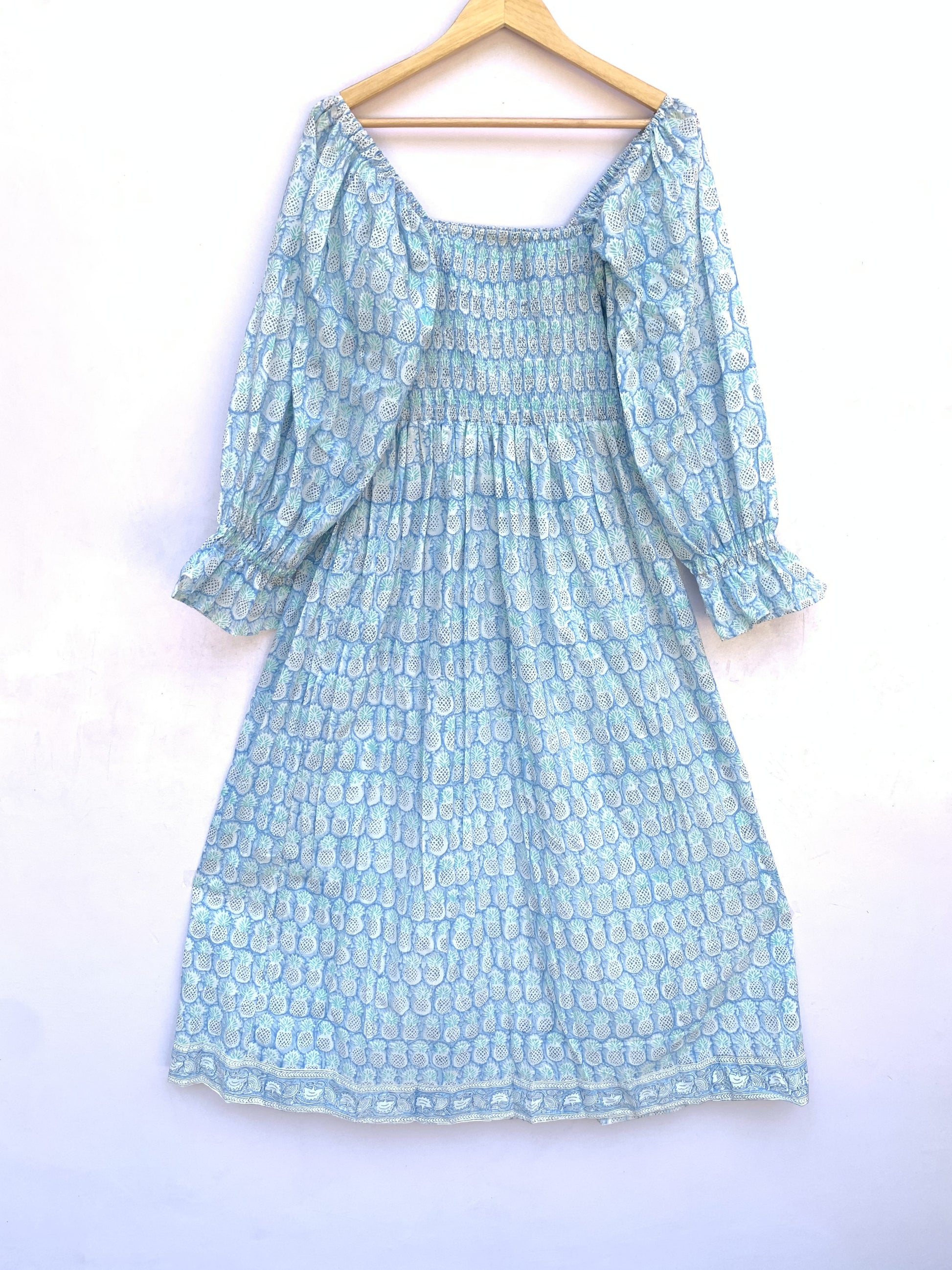 Features: Long ruffle sleeve, square neck, Long dress, smocked body