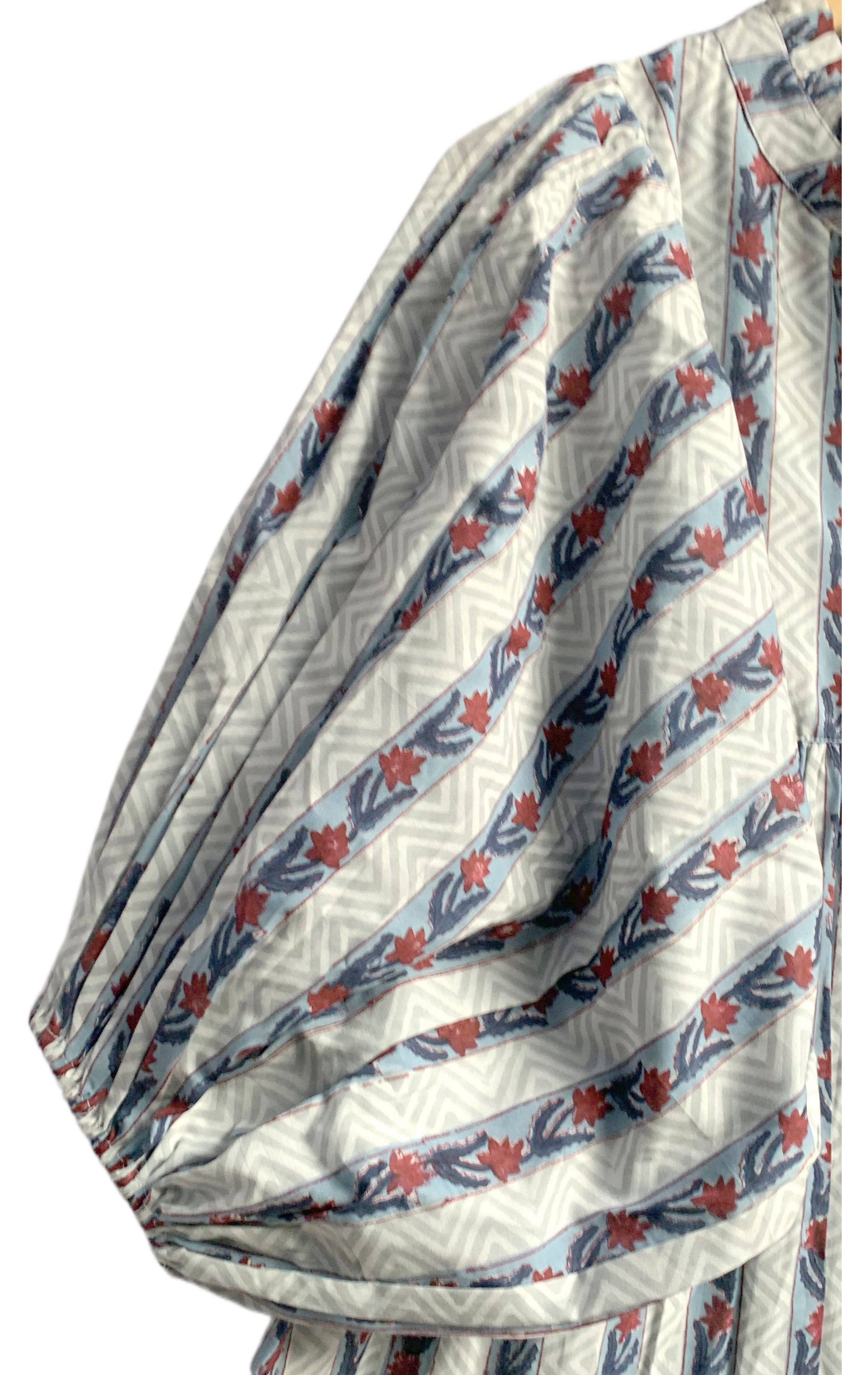 Blue Red Striped Hand Block Printed Cotton Midi Dress – Puff Sleeve Boho Indian Dress