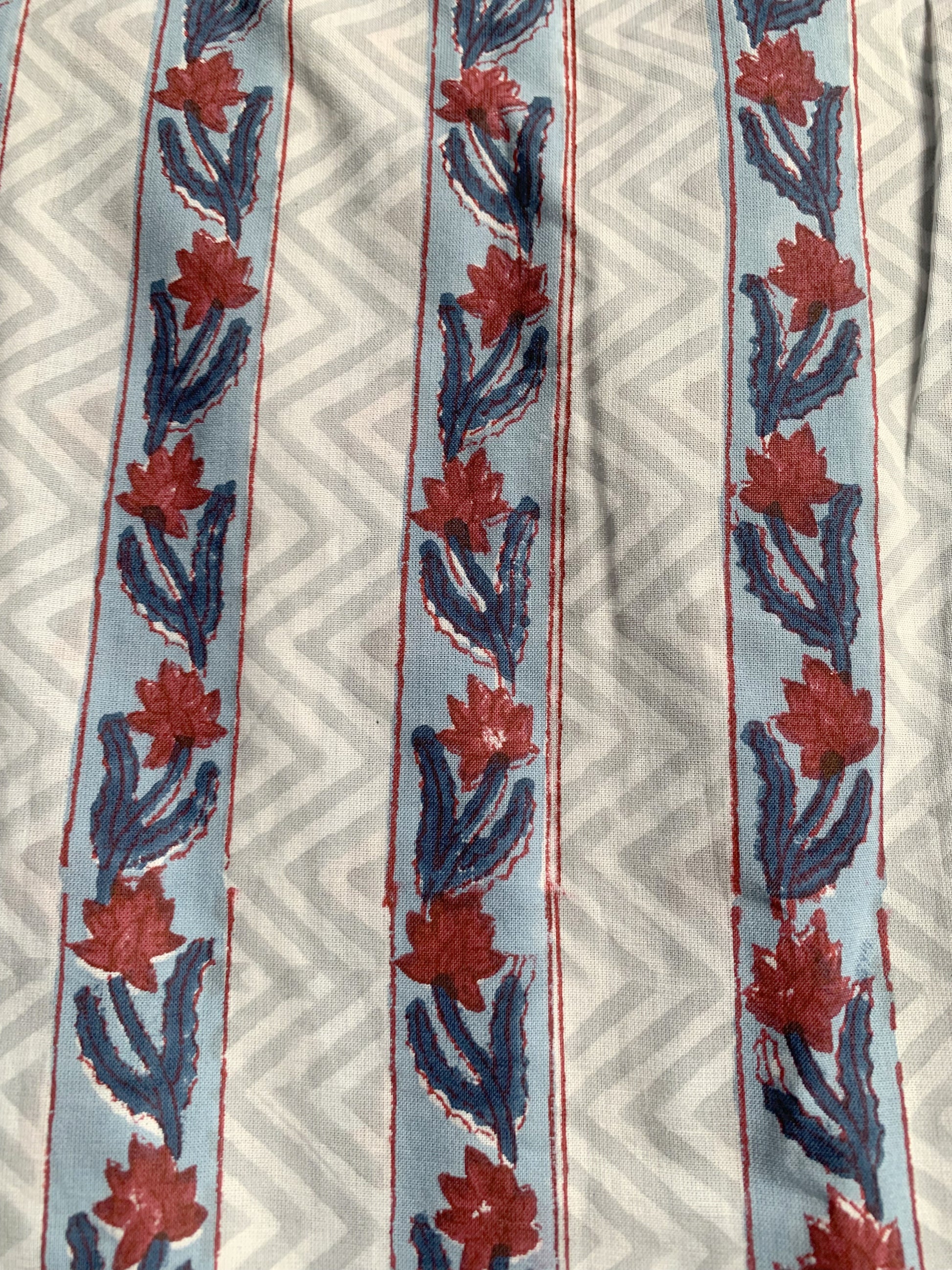 • Pattern: Hand block printed red striped motifs on a blue base