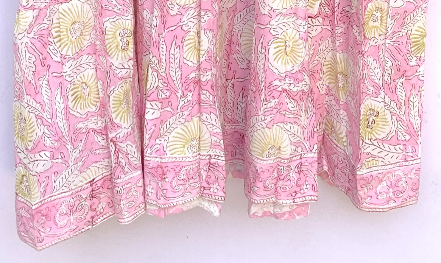 Blush Pink Floral Hand Block Printed Cotton Midi Dress – Boho Indian Dress