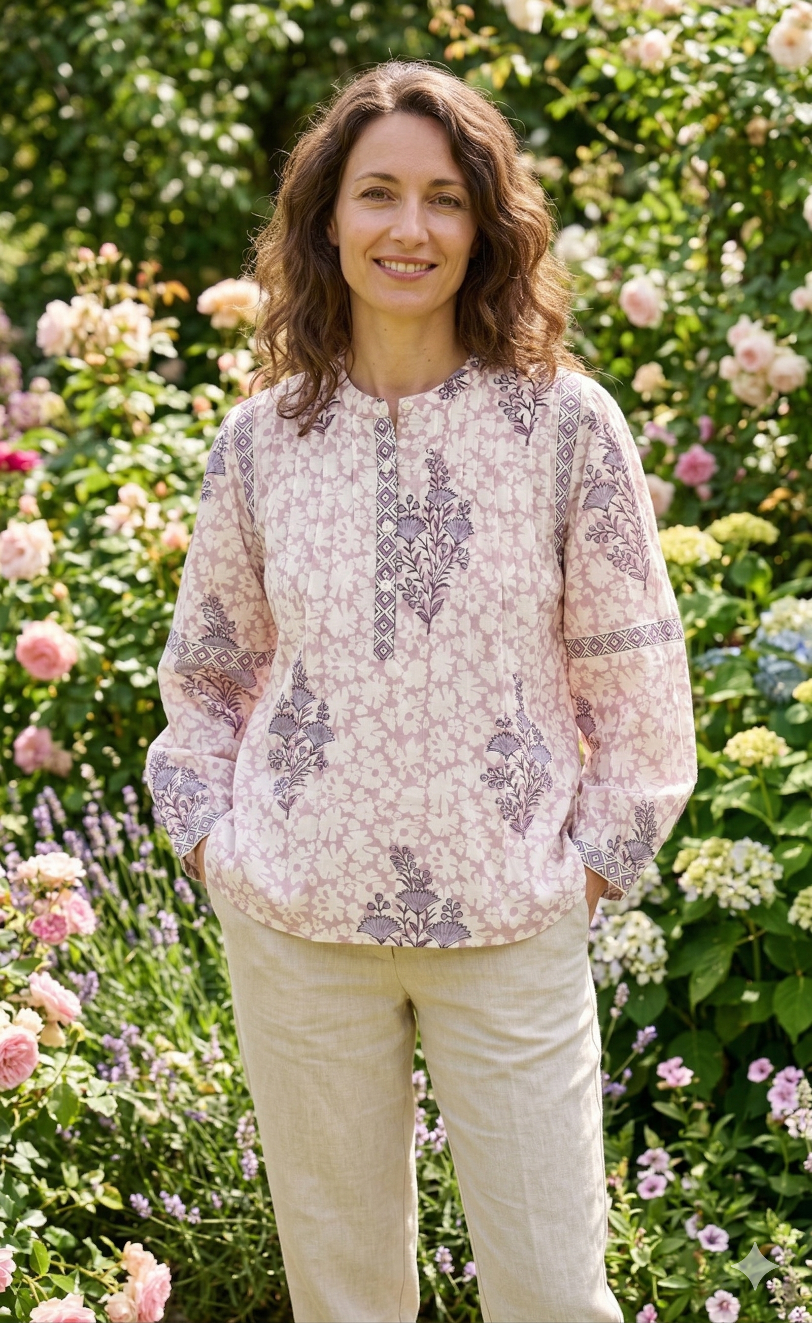 Blush Pink Hand Block Print Cotton Top – Boho Round Neck Blouse