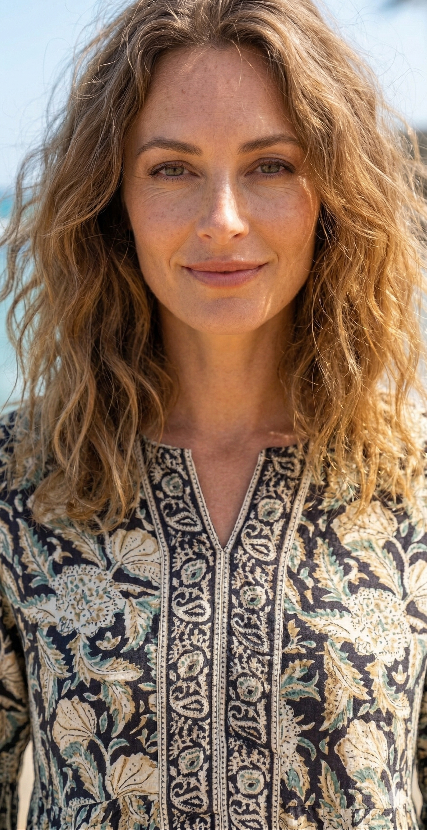 Handcrafted by skilled artisans in India using traditional hand block printing techniques, each piece carries subtle variations that celebrate its authentic handmade beauty. Designed with a relaxed tiered silhouette and dramatic wide bell sleeves, it offers graceful movement and breathable comfort.