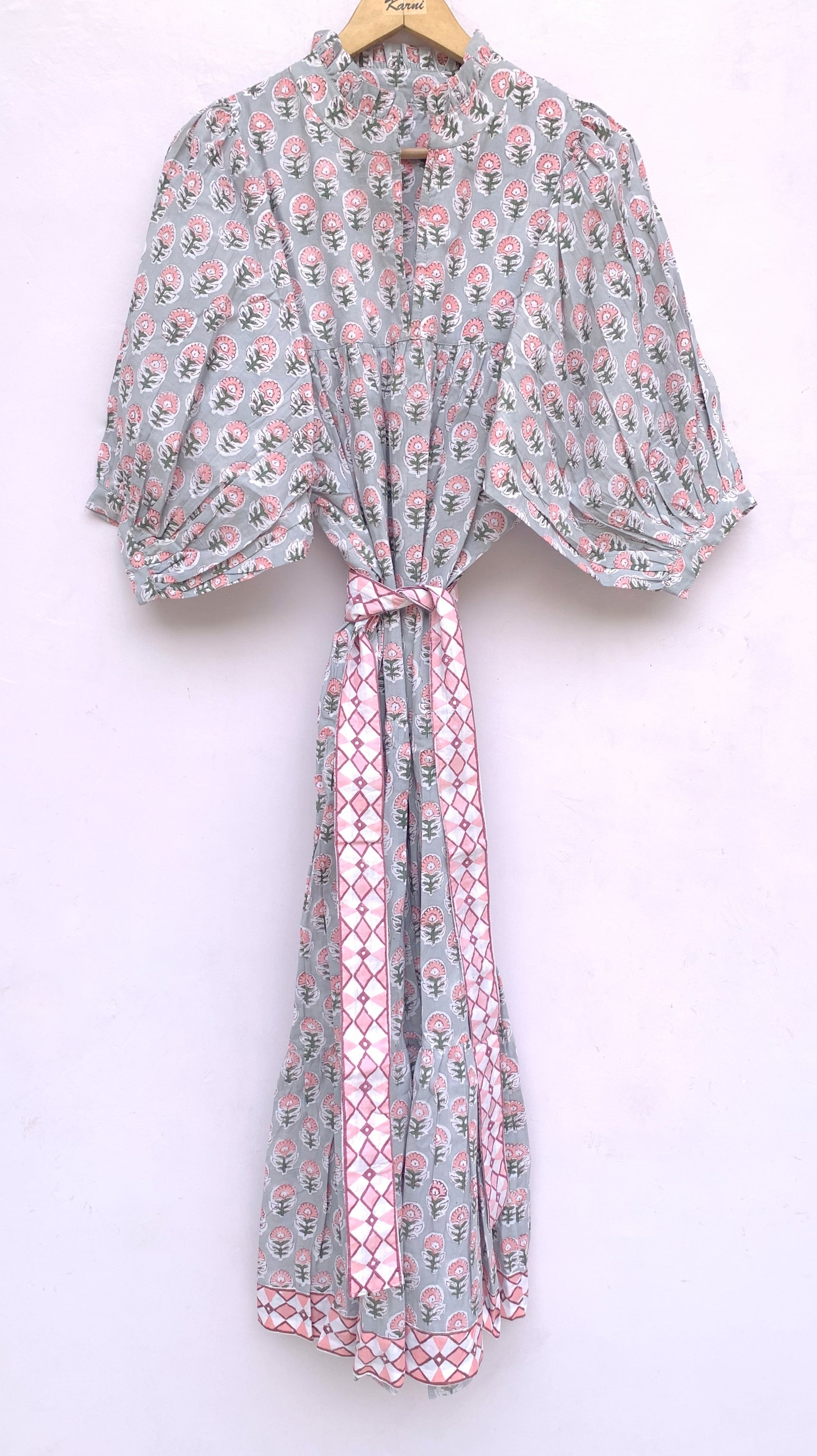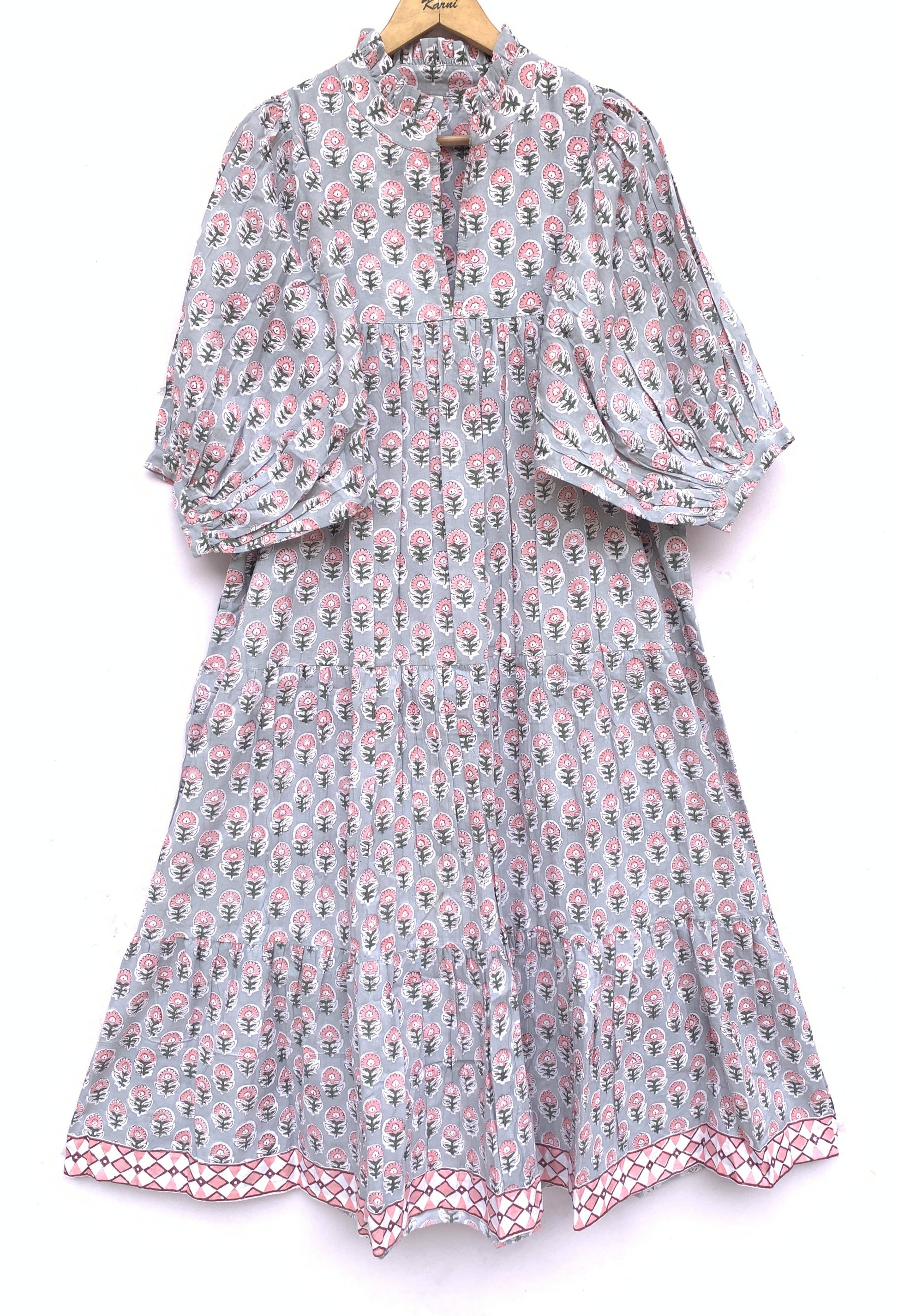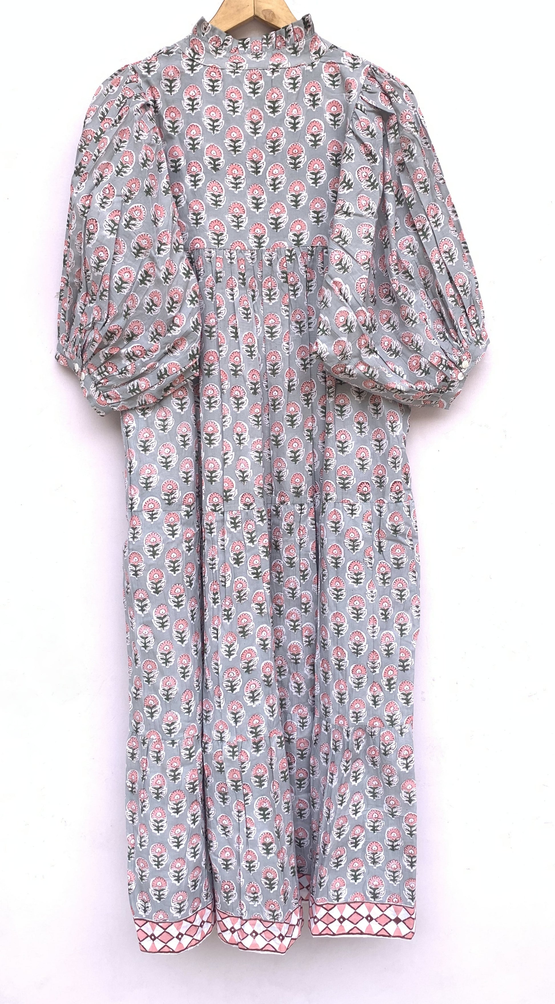Features : 3/4th sleeve, V neck, Long dress, Button sleeve