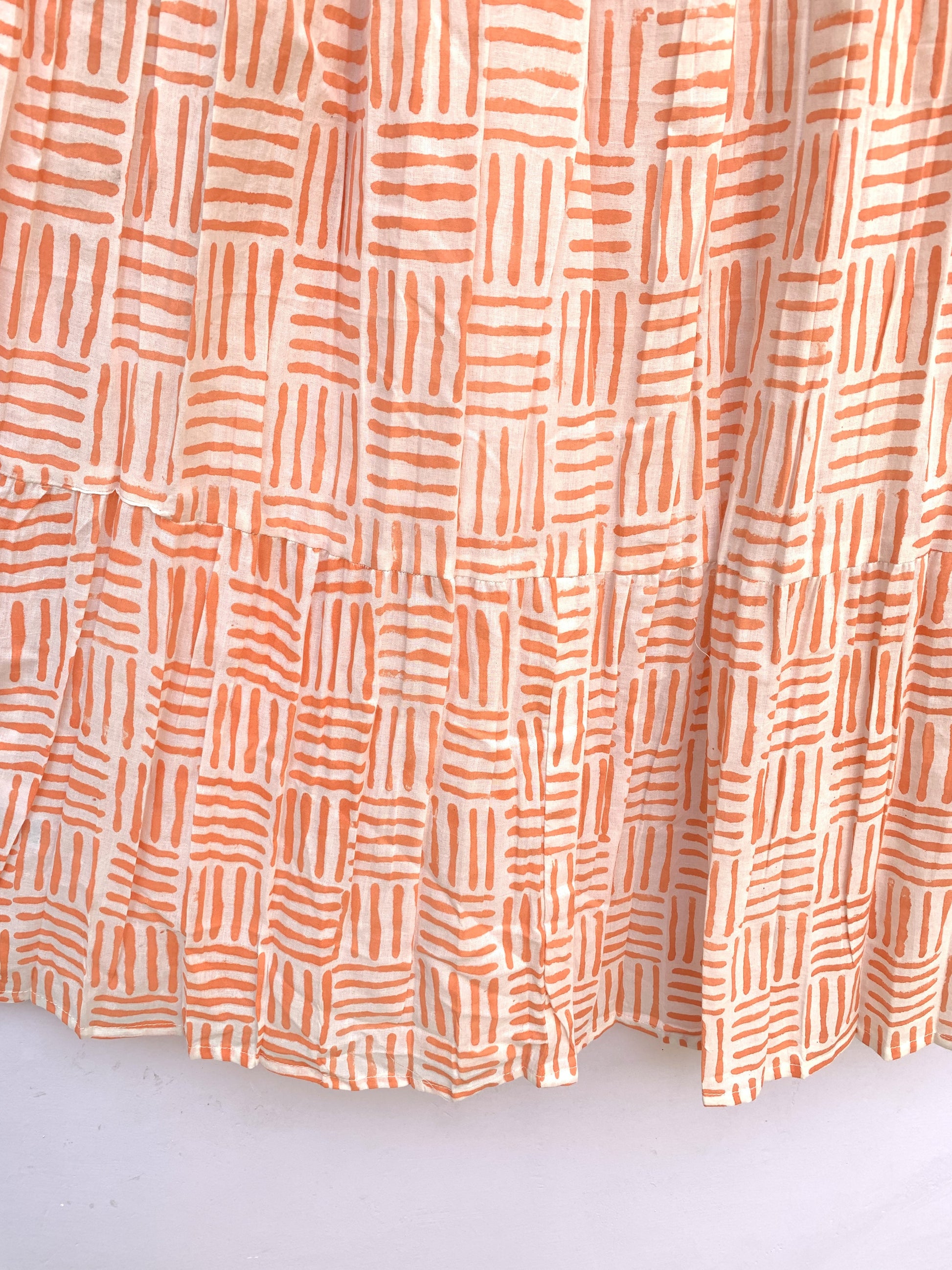 Peach Orange Geometric Hand Block Printed Cotton Skirt – Elastic Waist Boho Indian Skirt