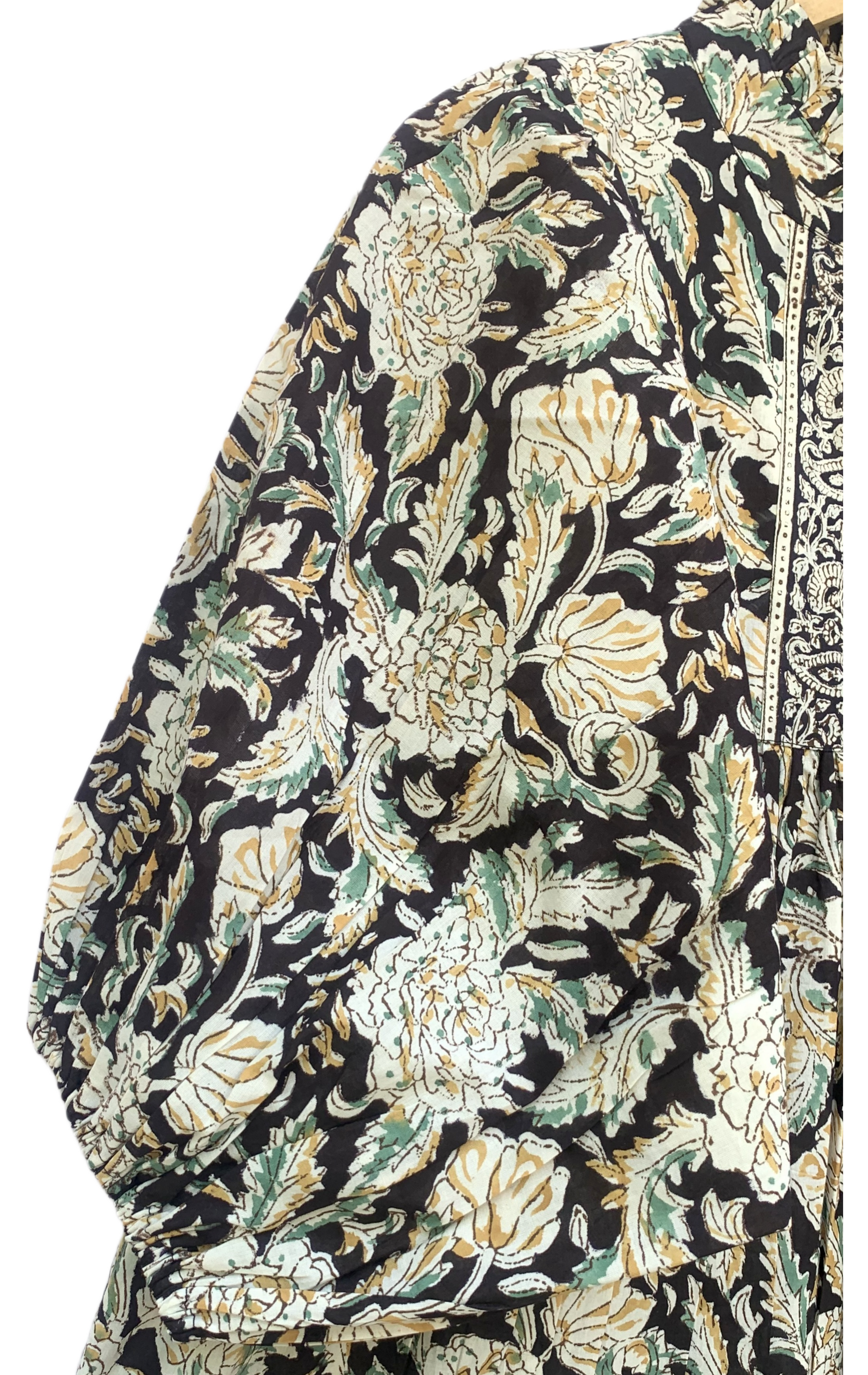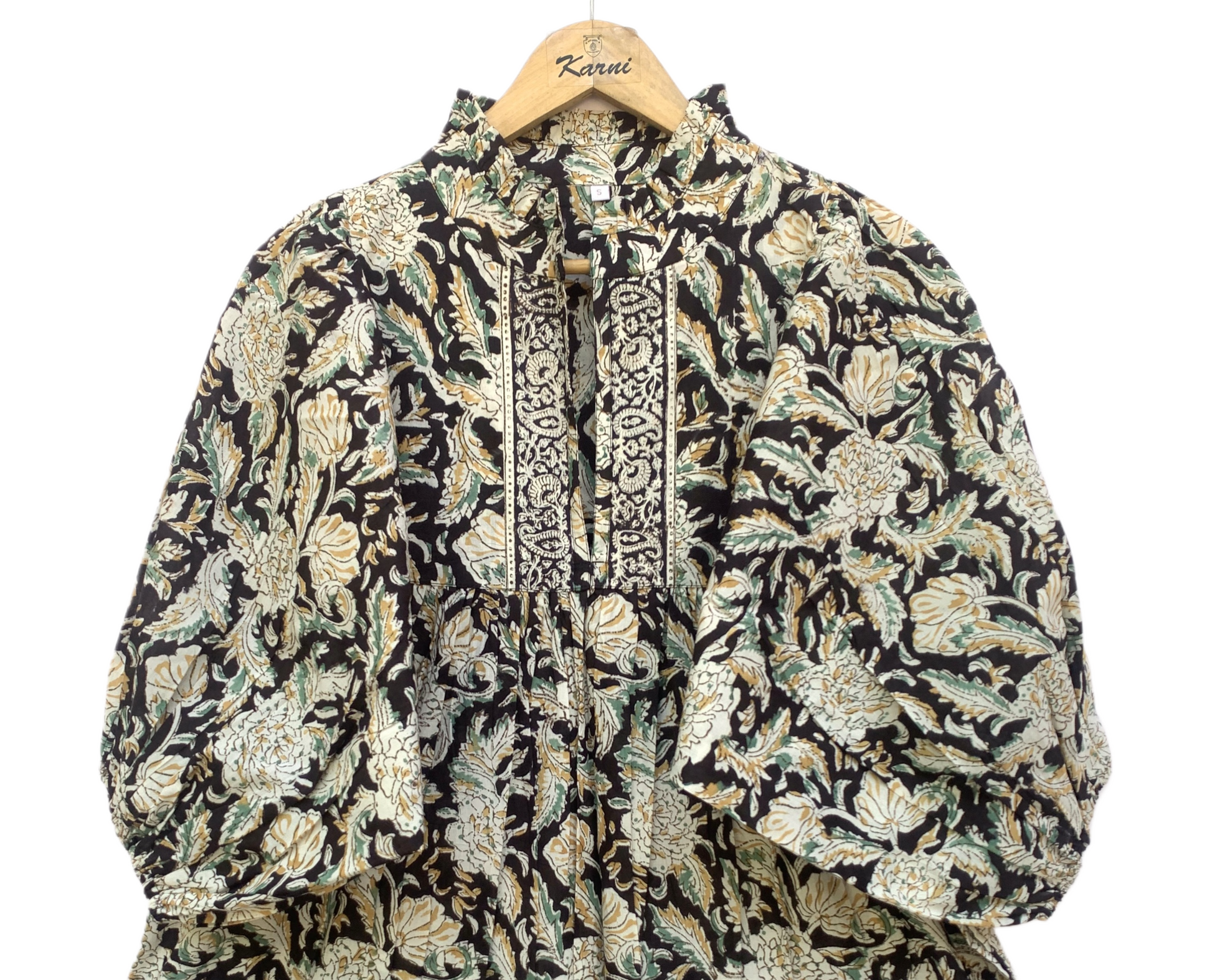 Refresh your wardrobe with this beautifully crafted light-blue floral midi dress, hand block printed by skilled artisans using traditional techniques. Soft, airy, and effortlessly feminine, it features delicate white floral motifs on a pastel blue base—perfect for warm, easygoing days.