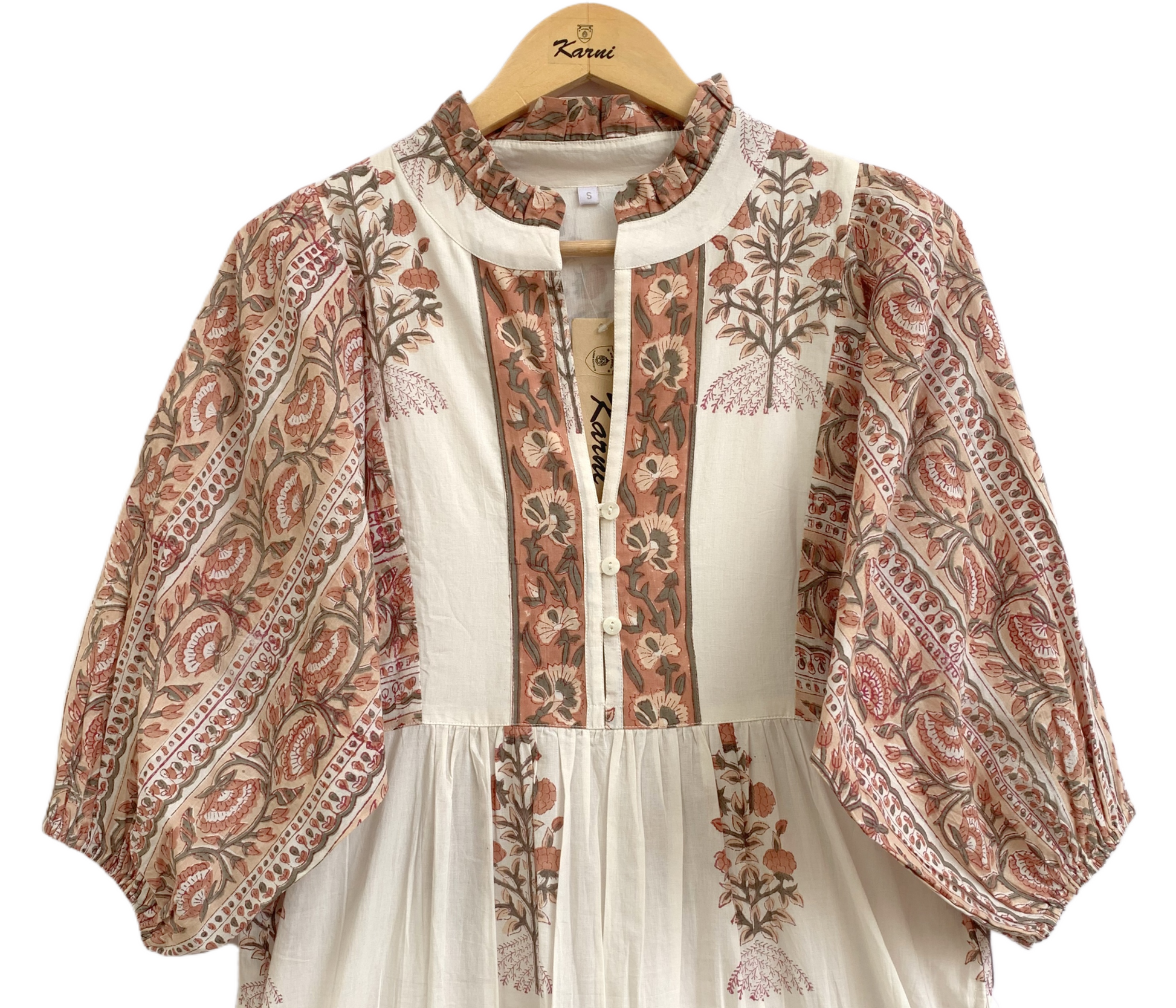 Handcrafted by skilled artisans in India using traditional hand block printing techniques, each piece carries the charm and uniqueness of authentic handmade textiles.