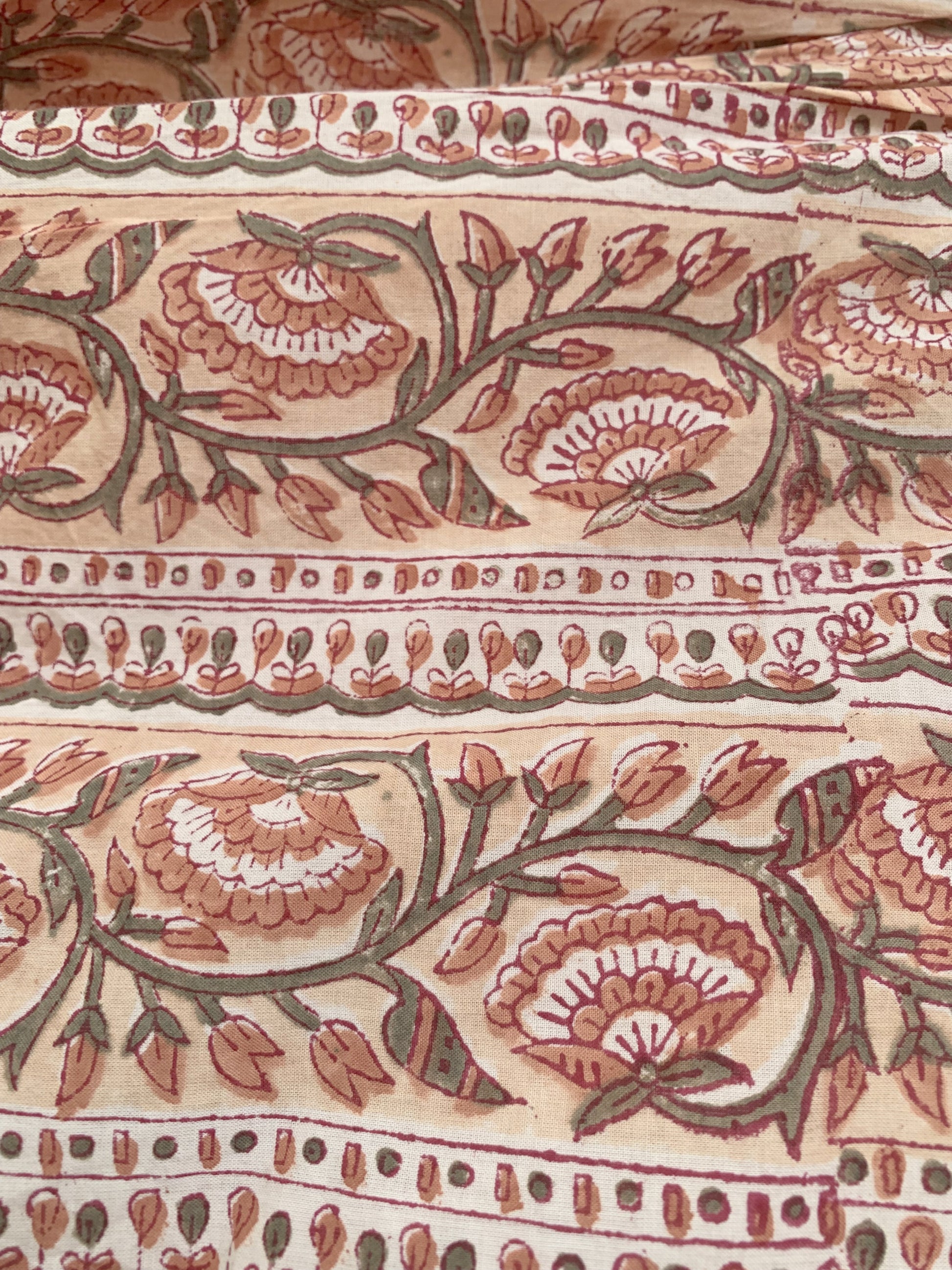 Due to the handmade block printing process, slight variations in print and color may occur, making each piece unique. Minor color differences may also occur due to lighting and screen settings.