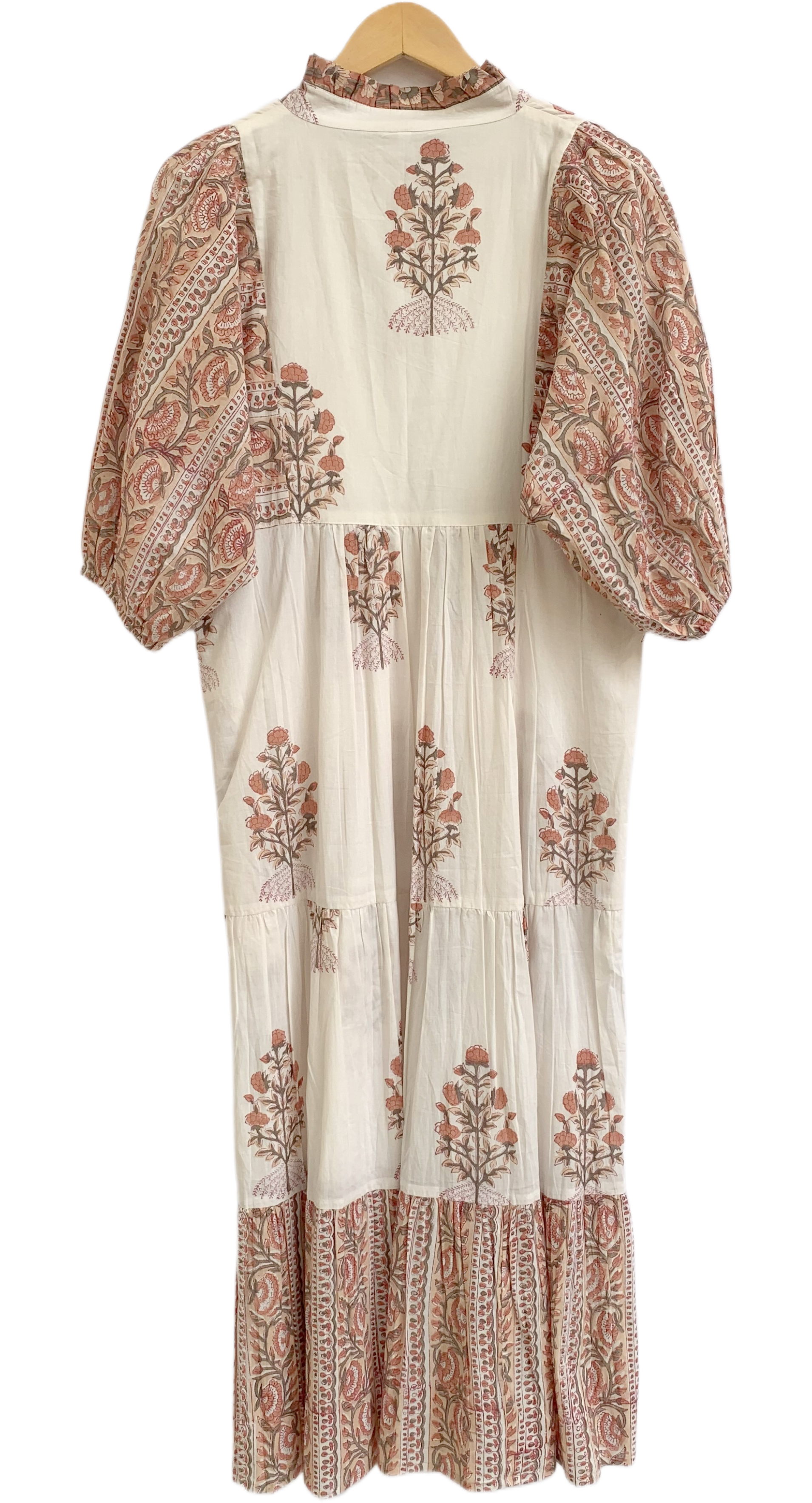 Rose Red Floral Hand Block Print Cotton Maxi Dress – Indian Boho Tiered Style