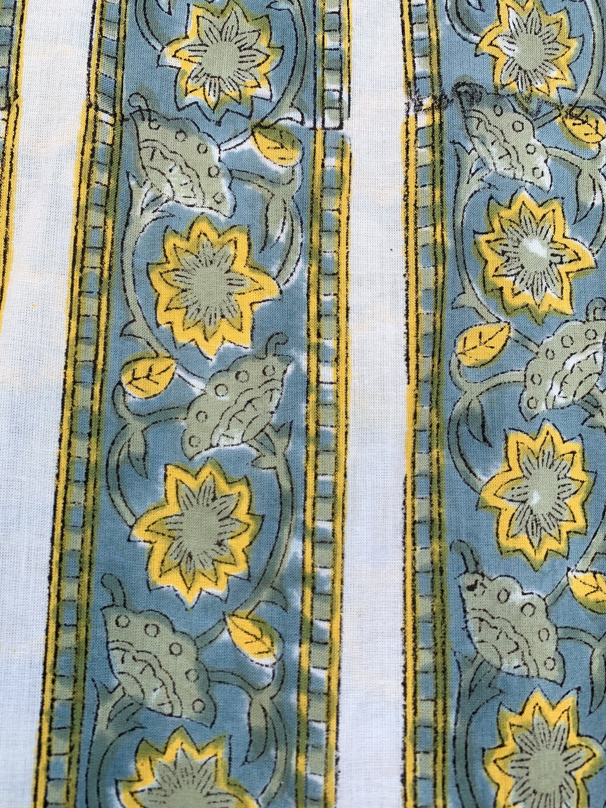 • Pattern: Hand block printed floral stripe motifs on a sage green base