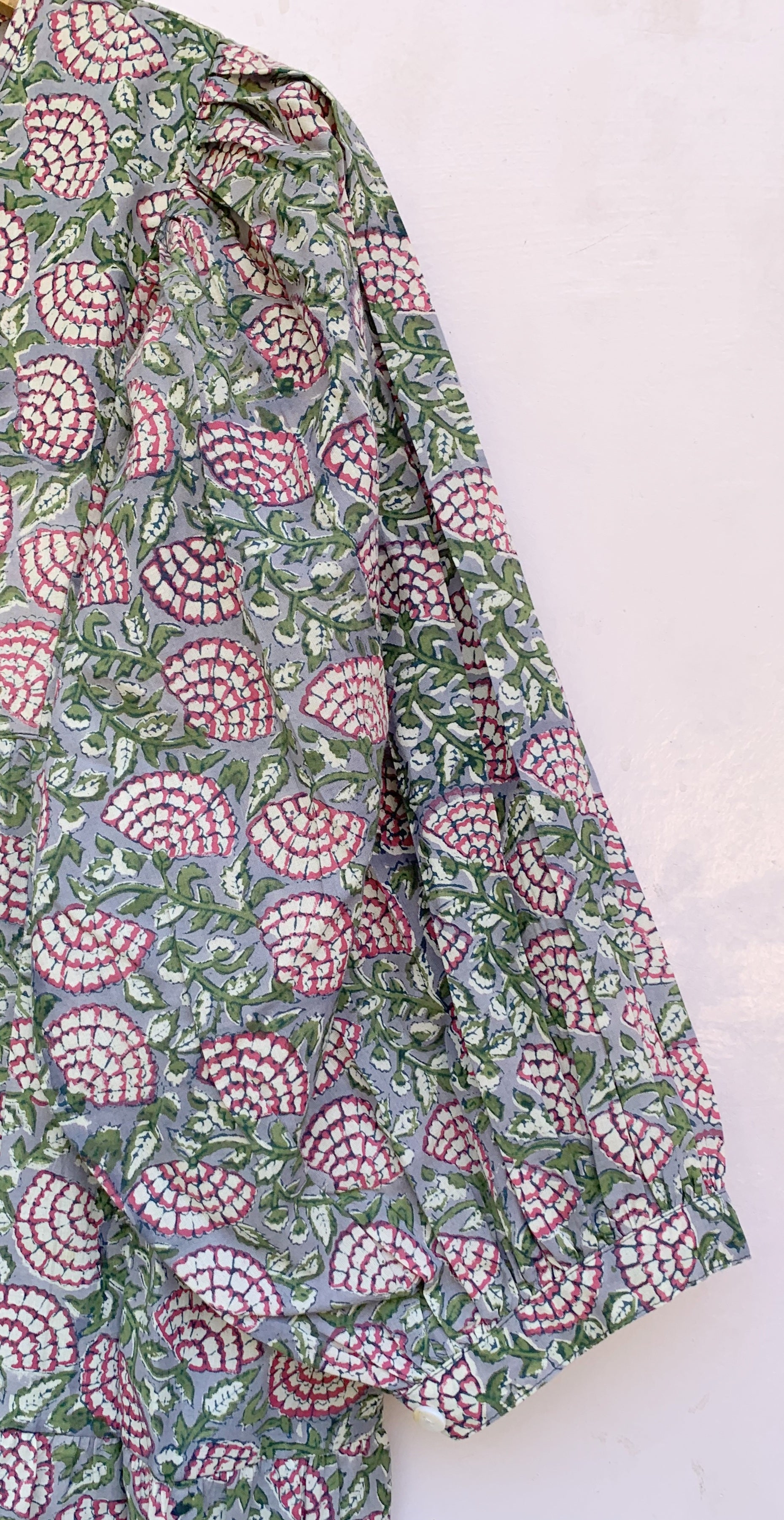 Each piece is hand block printed by skilled artisans in India, celebrating centuries-old techniques and the beauty of slow, handmade fashion.