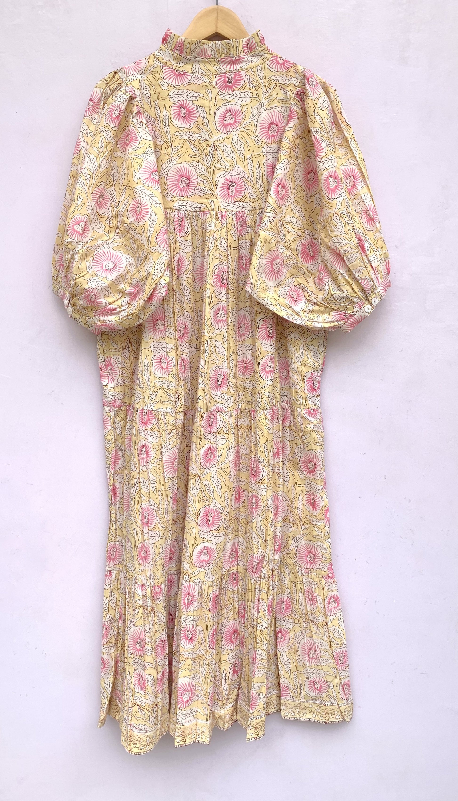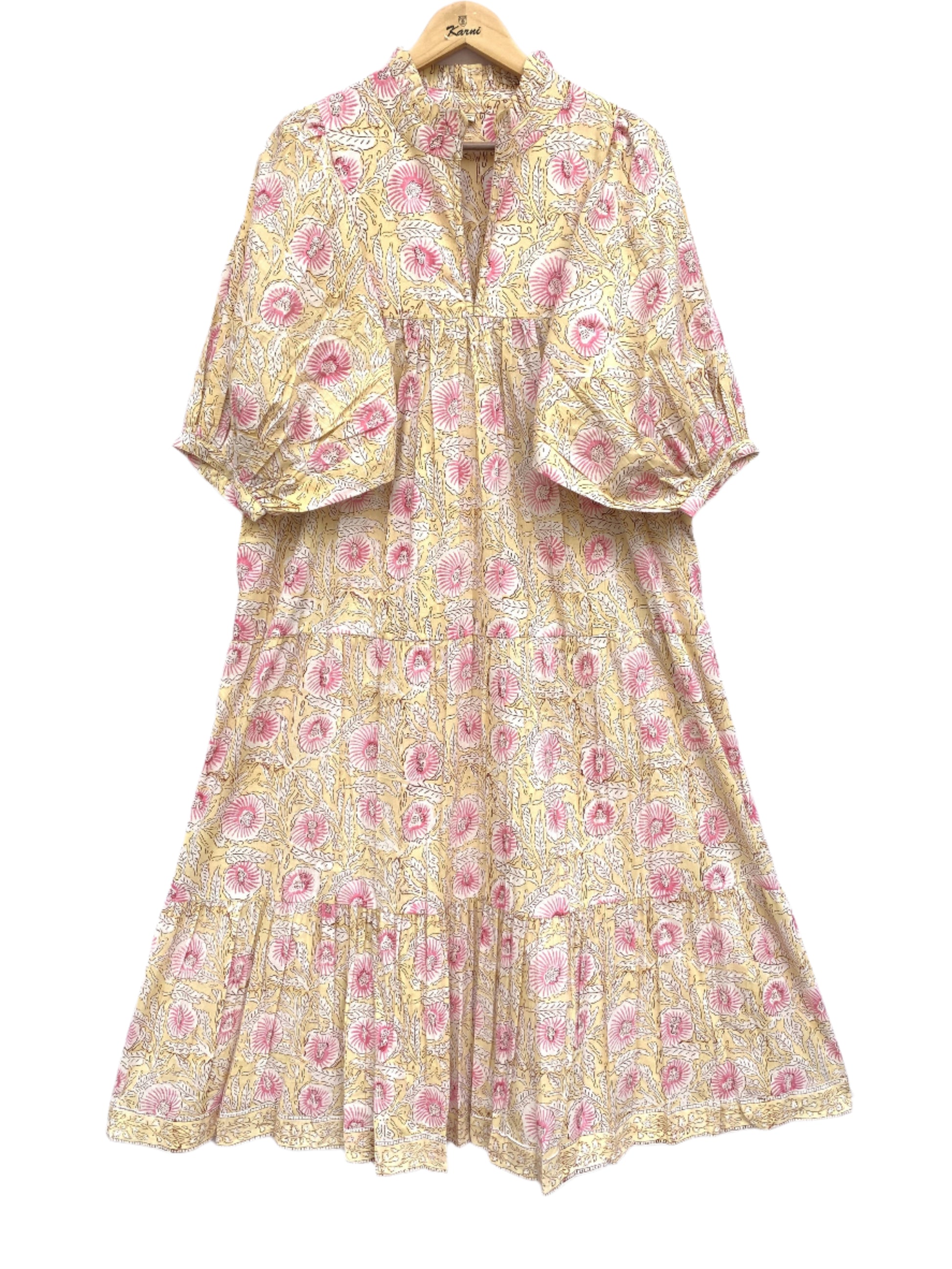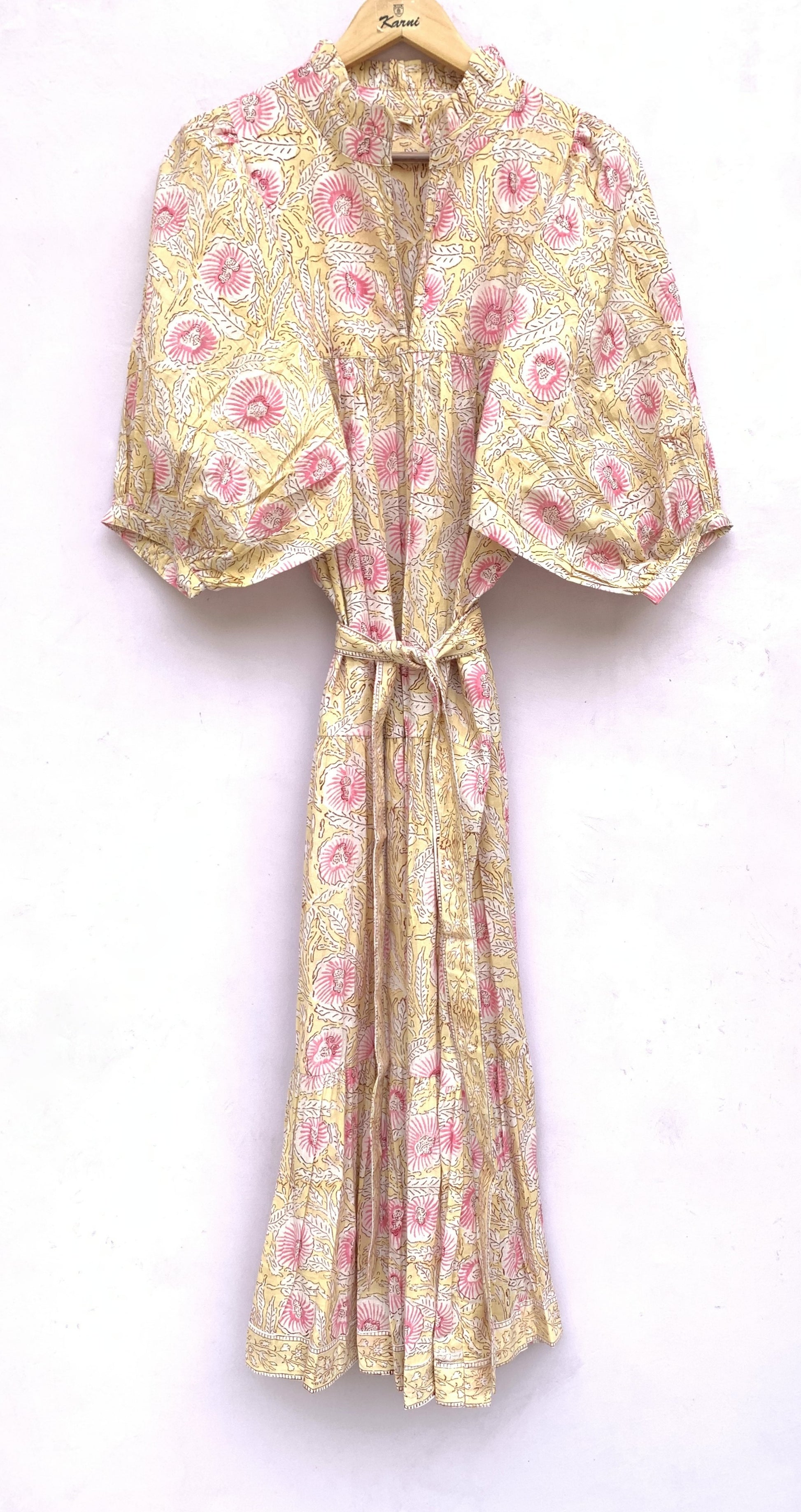 Features : 3/4th sleeve, V neck, Long dress, Button sleeve