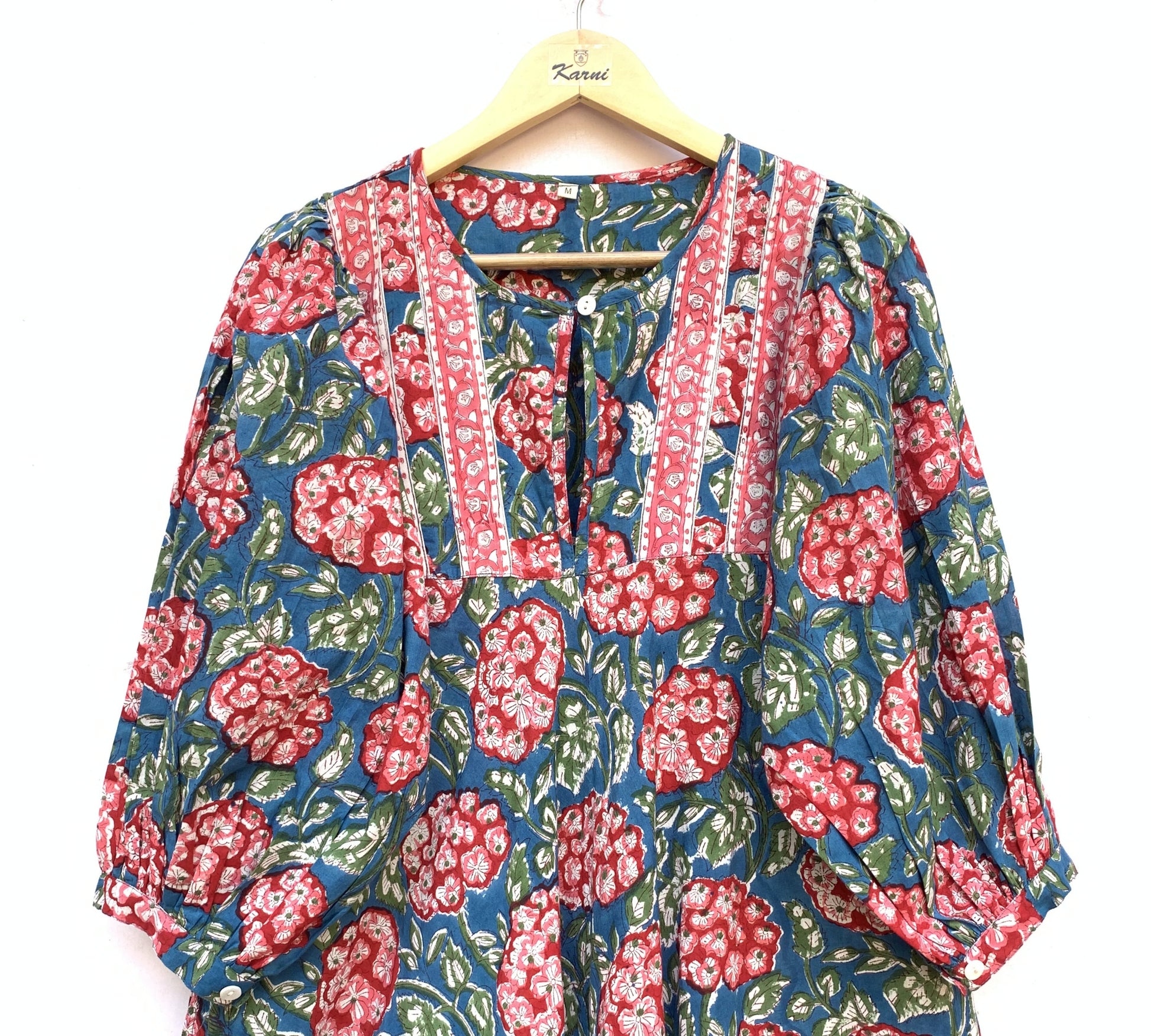 As this is a hand block printed garment, slight variations in print and color are natural and part of its handcrafted charm. Minor color differences may also occur due to lighting and screen settings.