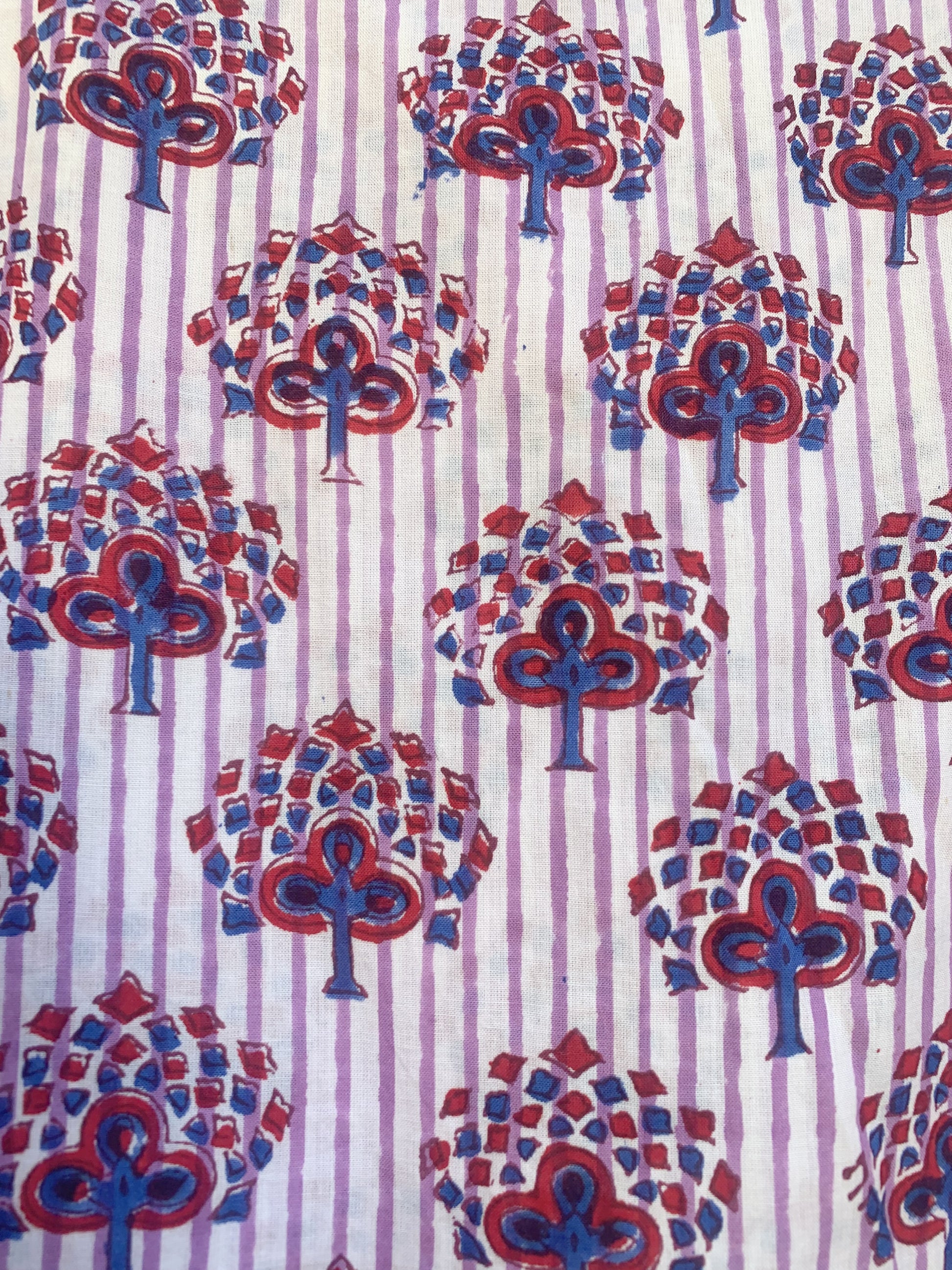 White Purple Floral Block Print Cotton Midi Dress – Boho Handmade Tiered Dress with Puff Sleeves & Red Contrast Yoke